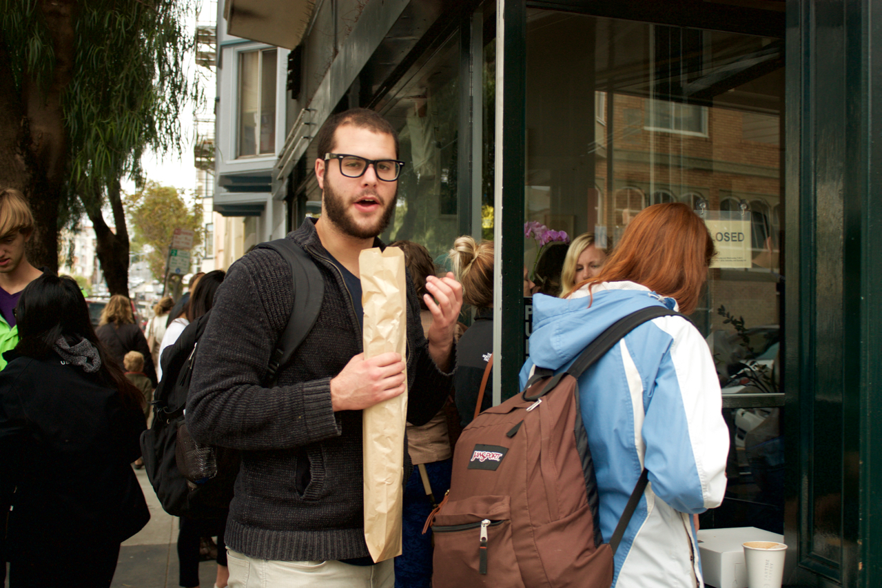 This dude waited half an hour in line for this baguette. So not worth it.