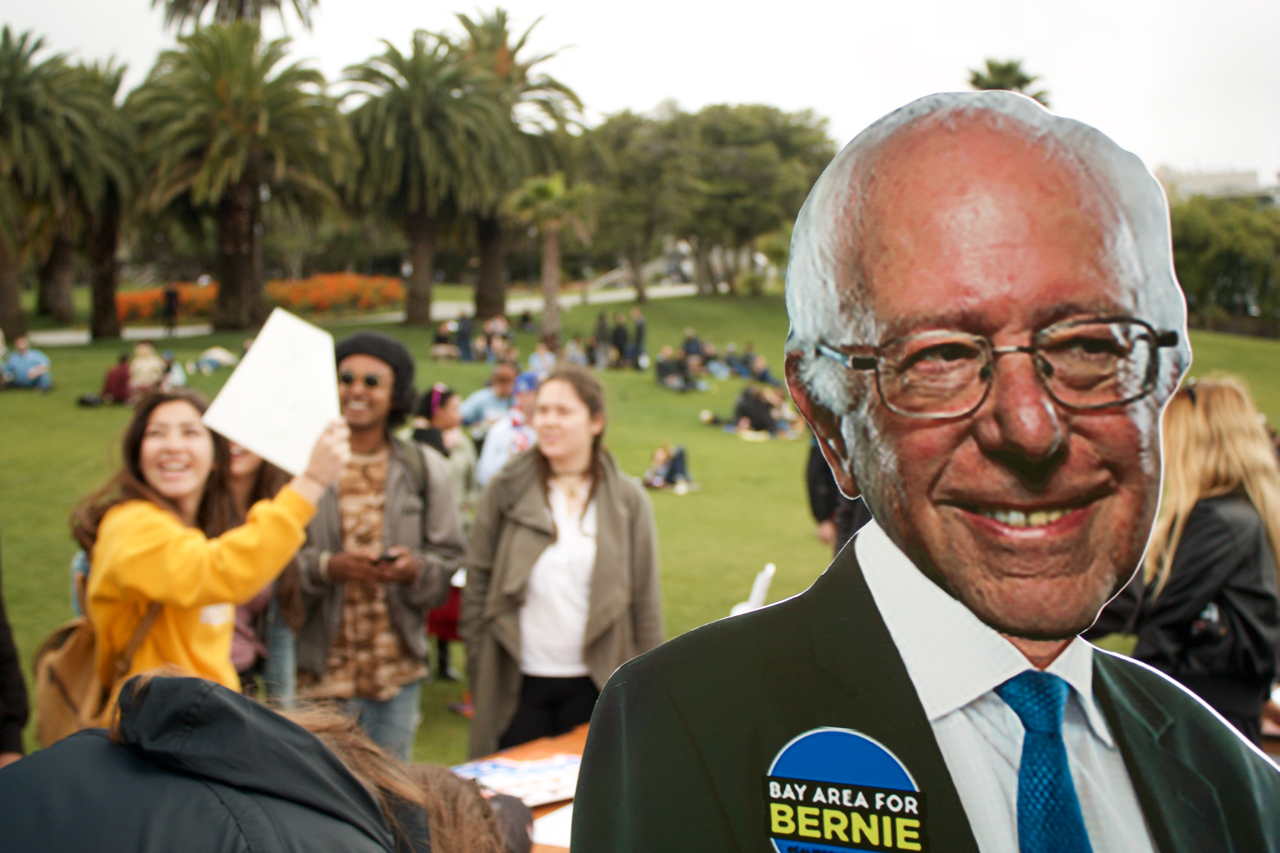 Bernie came to Dolores Park, in cutout form.