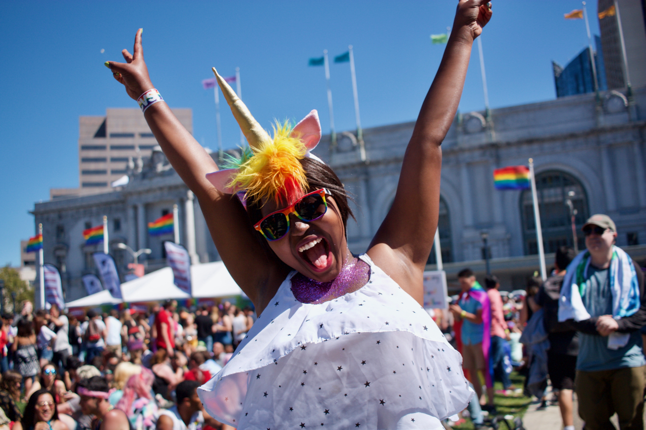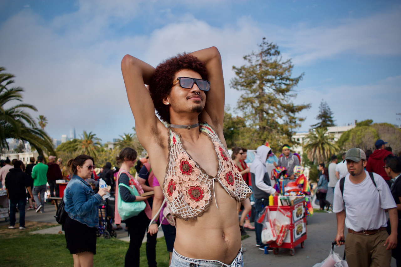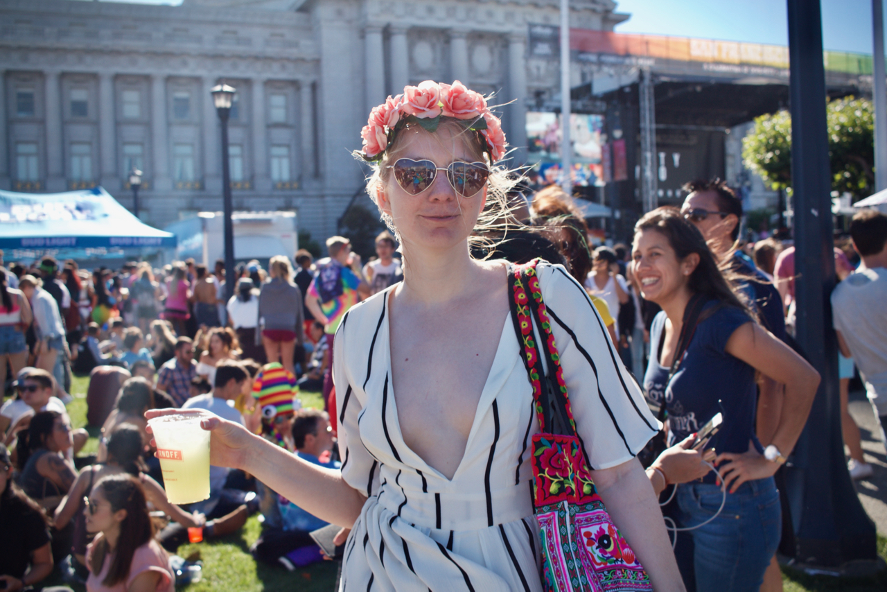 June 28, 2017This year, my Pride weekend was very similar to last year’s. Saturday at Dolores, Sunday at the Civic Center Plaza. However, it was colder, and people seemed to be in a different mood. It was much tamer, and there were fewer naked weirdos, but there were other weirdos, like me, asking strangers for their portraits.
