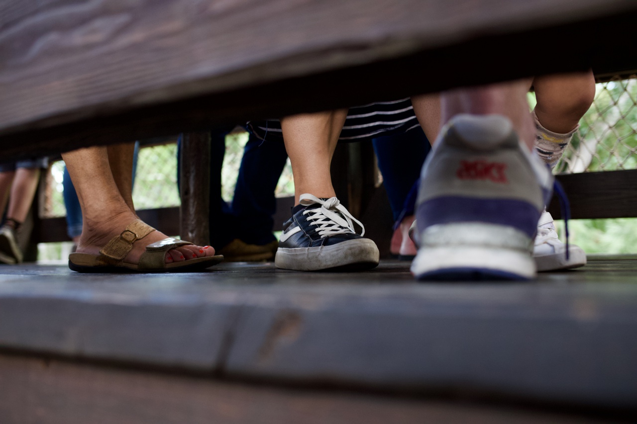 The touching knees.