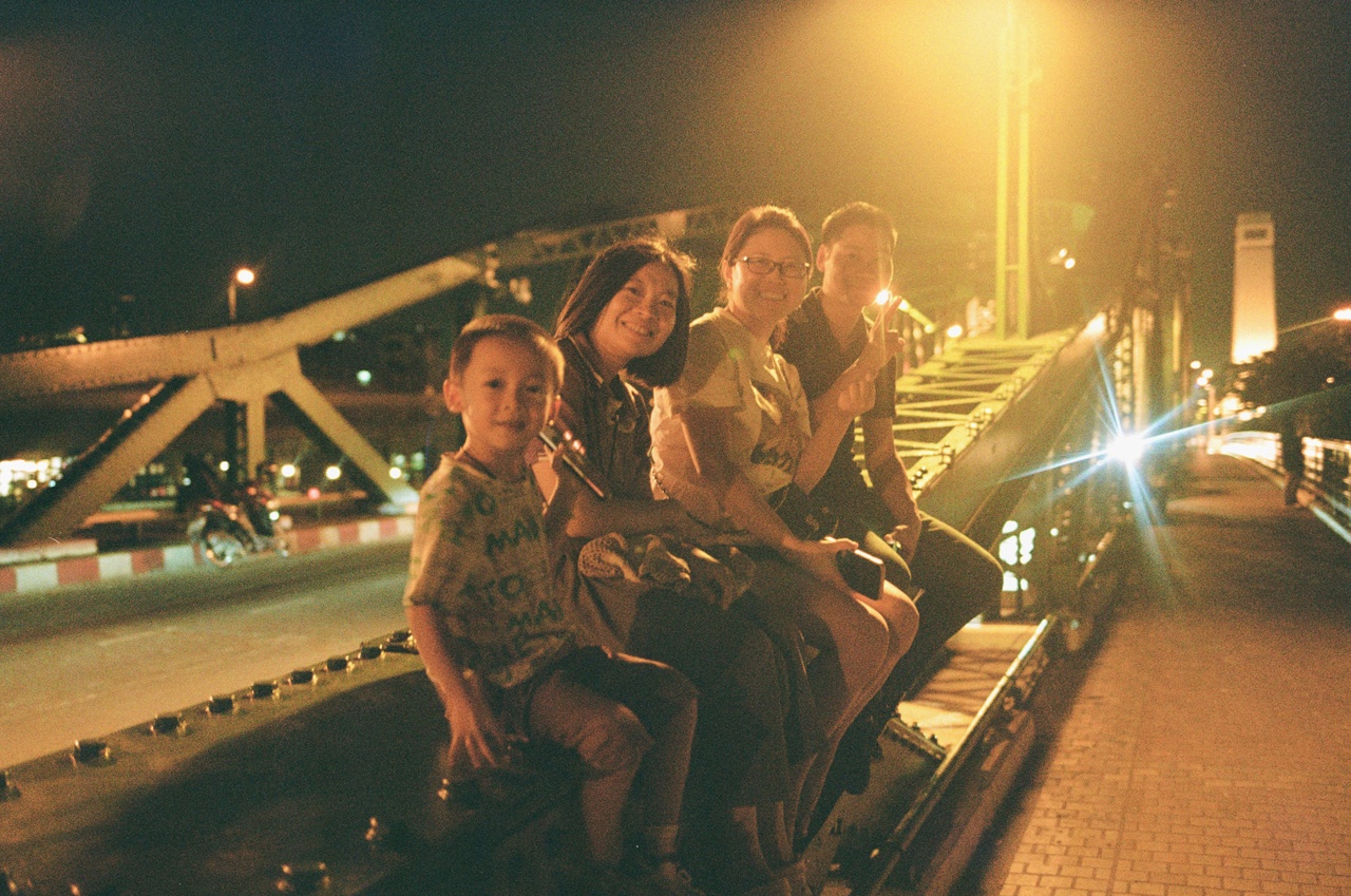 This family was facetiming on the bridge.